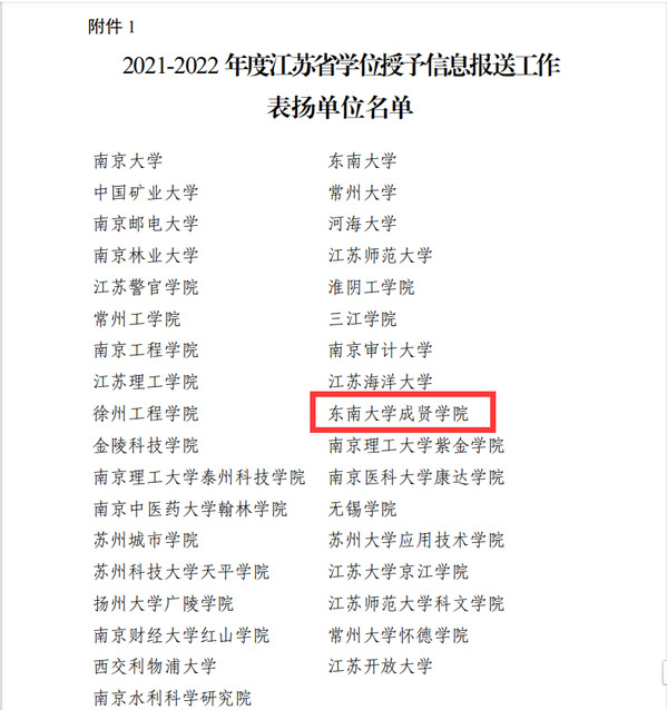 江苏省学位委员会办公室于近日发布了《省学位办关于2021-2022 年度江苏省学位授予信息报送工作情况的通报》(苏学位办函〔2023〕7号),Beat365官网获评2021-2022年度江苏省学位授予信息报送工作通报表扬单位,教务处陈雪琼获评2021-2022年度江苏省学位授予信息报送工作通报表扬个人。