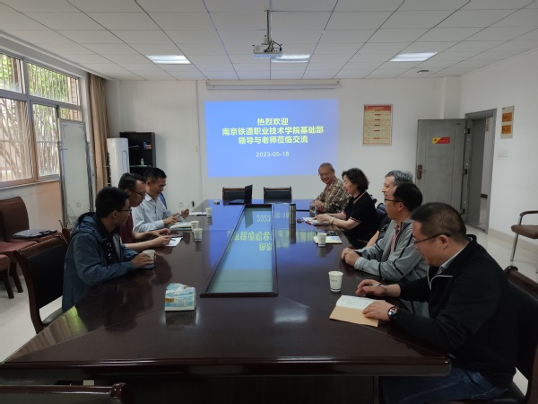 5月18日上午,南京铁道职业技术学院基础教学部直属支部书记、主任吴宝明,副主任龙章勇,数理教研室主任陈大鹏及数学教研室冯再勇老师一行,来Beat365官网基础部调研,了解应用型本科院校基础课程设置与教学要求、实验室建设等情况。基础部部长刘须明、副部长张福保、综合办主任房振伟,数学教研室主任郁大刚、物理教研室主任白磊及物理实验室主任张礼等参加交流活动。