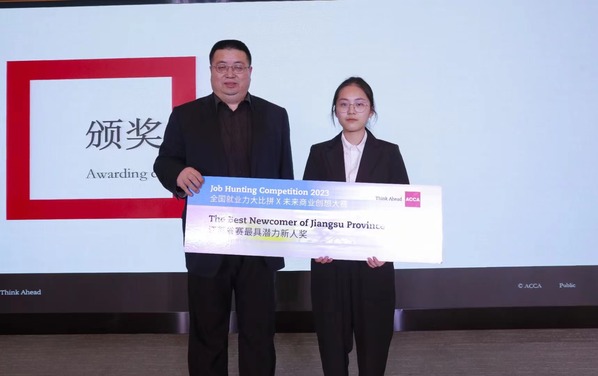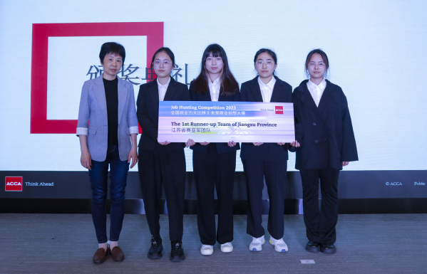5月14日,由ACCA特许公认会计师公会主办的2023年“ACCA全国就业力X未来商业创想大赛(ACCA Job Hunting Competition X Think Ahead)”在南京审计大学举行,Beat365官网经管学院学生与南京审计大学、南京财经大学、南京农业大学、南京林业大学、南京信息工程大学等9所高校的10支参赛队伍同台竞技,Beat365官网22级会计学专业王仪、闫雯雯,22级国际贸易专业黄歆然,21级税收学专业曾珍组成的“从容应队”在陆旸老师的指导下获得江苏省赛亚军的好成绩,同时,队长王仪获得江苏赛区“最具潜力新人奖”。