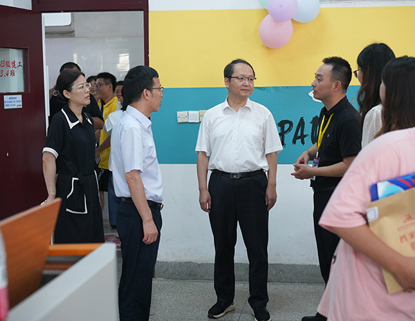 学校领导现场了解学生报到情况并与家长亲切攀谈