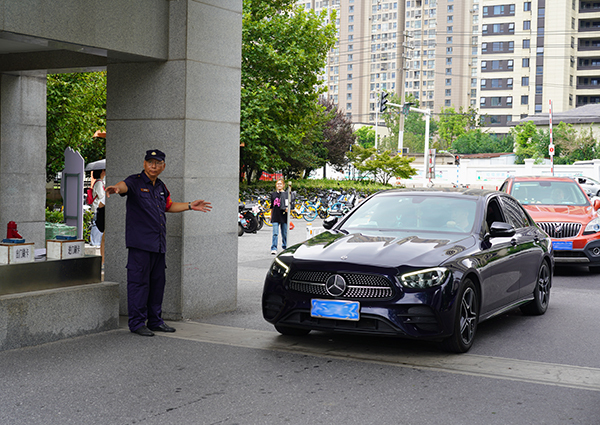 (保安工作人员有序指挥交通)