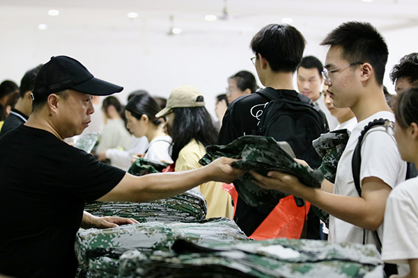 发放军训服现场