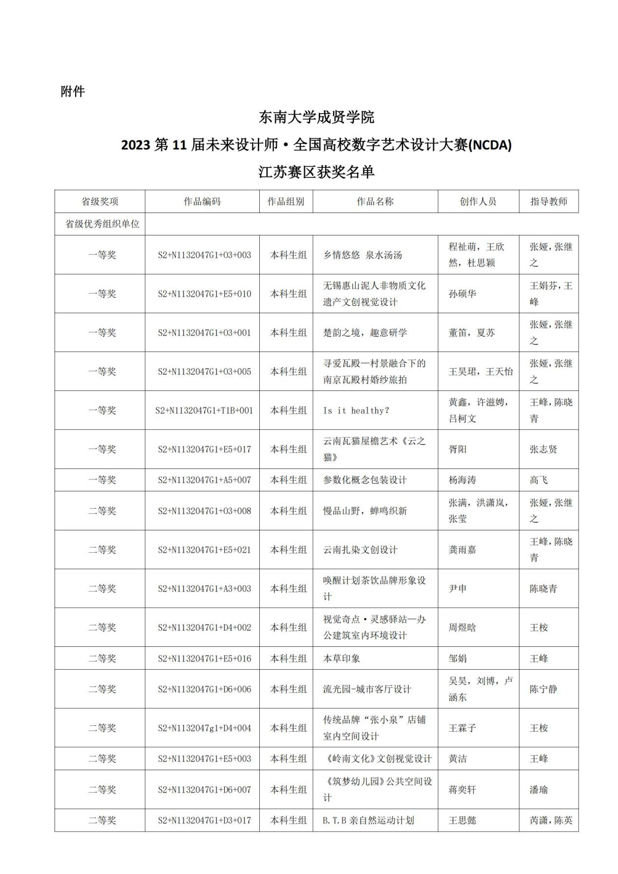学院作品在江苏赛区获得省级奖项38项,其中一等奖7项、二等奖13项、三等奖18项,并荣获省级优秀组织单位称号。9月经过组委会严格筛选最终在全国总决赛中获得国家级奖项4项,分别为一等奖1项、二等奖1项、三等奖2项,创下了学院单届国家级A类赛事国赛中同时获得一、二、三等奖的新记录。