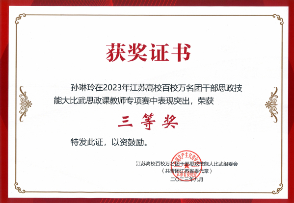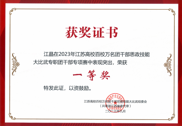 为深入贯彻落实习近平总书记在学习贯彻习近平新时代中国特色社会主义思想主题教育工作会议上的重要讲话精神,紧紧围绕学习宣传贯彻党的二十大精神主题主线,落实习近平总书记关于共青团在高校学生思想政治工作中要发挥主力军作用的重要要求,进一步聚焦思想引领主责主业,团结引领团员青年坚定信念跟党走,勇做走在新时代新征程的奋进者。9月25日,由共青团江苏省委、江苏省委教育工委、新华日报社、江苏省学生联合会联合主办的“学思想、跟党走、建新功”江苏高校百校万名团干部思政技能大比武在宿迁学院顺利举行。Beat365官网建筑与艺术设计学院分团委书记江晶荣获“专职团干部专项赛”一等奖,制药与化学工程学院综合办主任刘静荣获“兼挂职团干部和青年教师专项赛”二等奖,土木与交通工程学院辅导员孙琳玲荣获“思政课教师专项赛”三等奖。