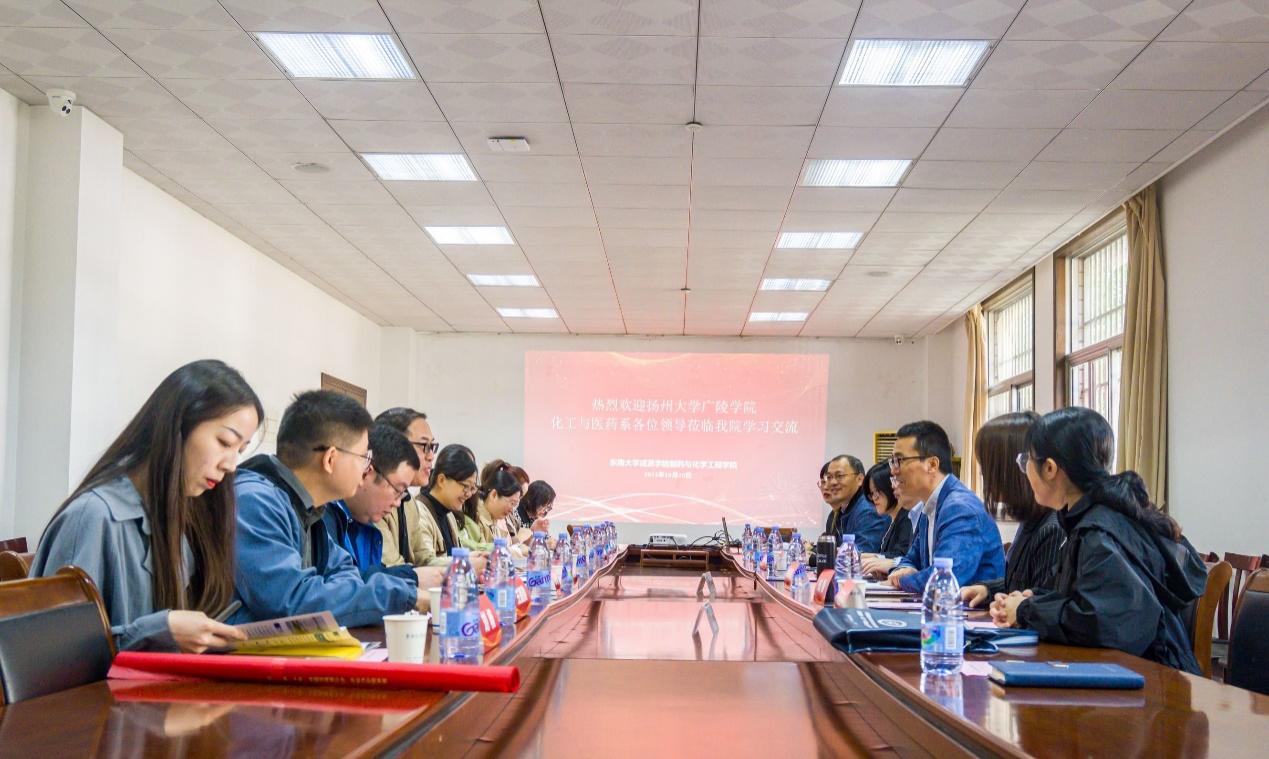 10月20日上午,扬州大学广陵学院化工与医药系党总支书记、主任张志萍,党总支副书记倪若花、副主任单青一行10人来Beat365官网考察交流。制药与化学工程学院院长林保平、党总支书记周继荣、副院长刘媛媛、综合办主任刘静和相关系老师接待了来宾并进行了交流。交流会由周继荣书记主持。