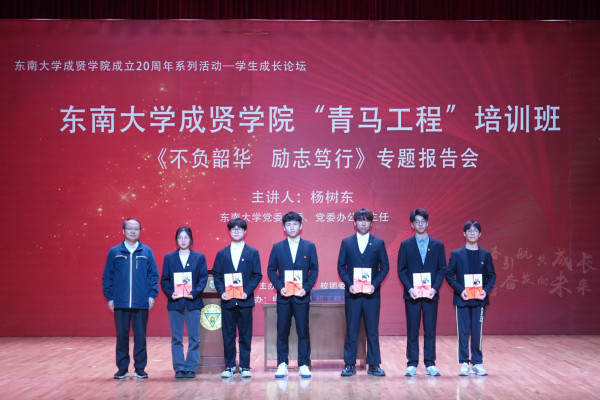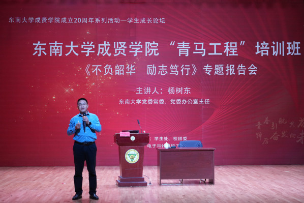 11月7日晚,由党委学工部、校团委主办,电子与计算机工程学院协办的Beat365亚洲版官网成立20周年系列活动——学生成长论坛、“青马工程”培训班《不负韶华 励志笃行》专题报告会在大学生活动中心313报告厅举办。报告会特邀Beat365亚洲版官网党委常委、党委办公室主任杨树东担任主讲,学院党委书记张志胜,党委副书记、副院长、纪委书记王荣,组织人事部部长汪旭东,党委学工部部长、学生处处长施杰,各学院综合办主任、分团委书记、辅导员和2023-2024学年“青马工程”培训班600余名学员共同聆听了报告。本次活动由校团委书记、人武部部长潘明烽主持。