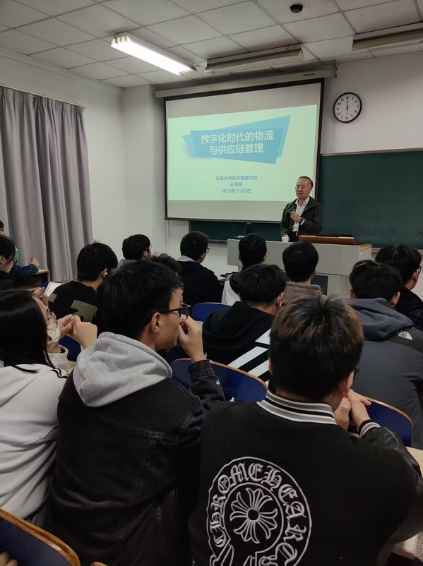 讲座中,王教授从供应链数字化、物流大数据、智慧物流三方面向同学们详细解读物流专业发展前沿,运用了大量案例生动地分析了供应链数字化的内容及发展阶段、物流产业升级过程、大数据在物流中的应用、智能化背景下物流的发展及新技术在物流中的应用等前沿内容。讲座最后,王教授建议同学们关注专业发展前沿,注重培养学习能力、思考能力、实践能力,做到知行合一,并与同学们进行互动,解答疑惑。
