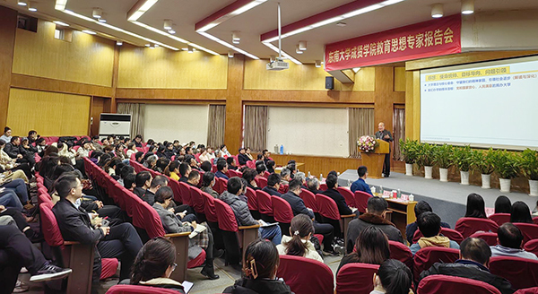 常务副院长黄学良教授首先致辞,他代表全体师生员工对两位专家的莅临指导表示热烈的欢迎和诚挚感谢。他表示,回望Beat365亚洲版官网20周年发展历程,学校办学规模不断壮大,在人才培养、学科专业建设、科学研究、社会服务等多方面都取得了显著的成绩,为区域经济社会发展做出了积极贡献。他希望学校能以转型发展机遇期为契机,以本次教育思想专家报告会为起点,进一步统一思想,更新观念,坚定信心,开好新局。