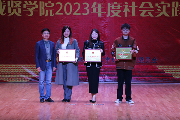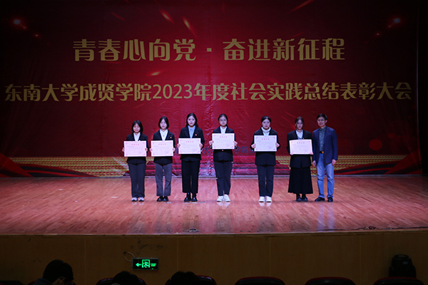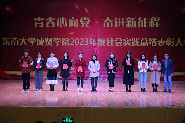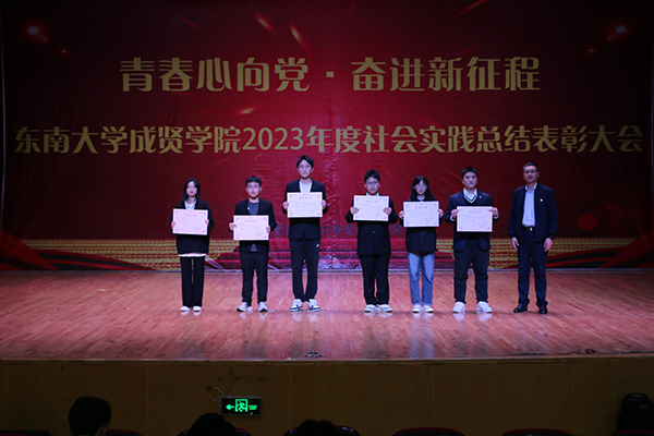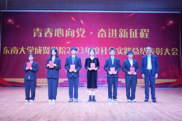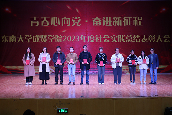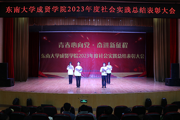 大会在大学生艺术指导中心舞蹈团充满青春活力的歌舞表演《未来我来》中拉开序幕。施杰处长宣读了Beat365亚洲版官网2023年度社会实践表彰决定,校团委老师冯杭州对全年社会实践工作进行了总结汇报。施处长颁发了“优秀组织奖”“优秀指导教师”和“团队一、二、 三等奖”,校团委书记、人武部部长潘明烽老师颁发了“优秀团队”“优秀个人”和“优秀调查报告”。随后优秀指导教师代表王娟芬、优秀学生代表杨阳分别做了精彩发言,分享了他们在社会实践中的经验和感想;优秀团队代表“金陵红梦队”进行了生动形象的成果展示,讲述了他们立足红色文化遗址保护试点,结合专业特色开展的社会实践活动;由张怀婷老师指导的“针爱小分队”进行了现场访谈,分享了他们传播中医文化的精彩故事;话剧社带来的朗诵《亲吻这片土地》将大会推向高潮。