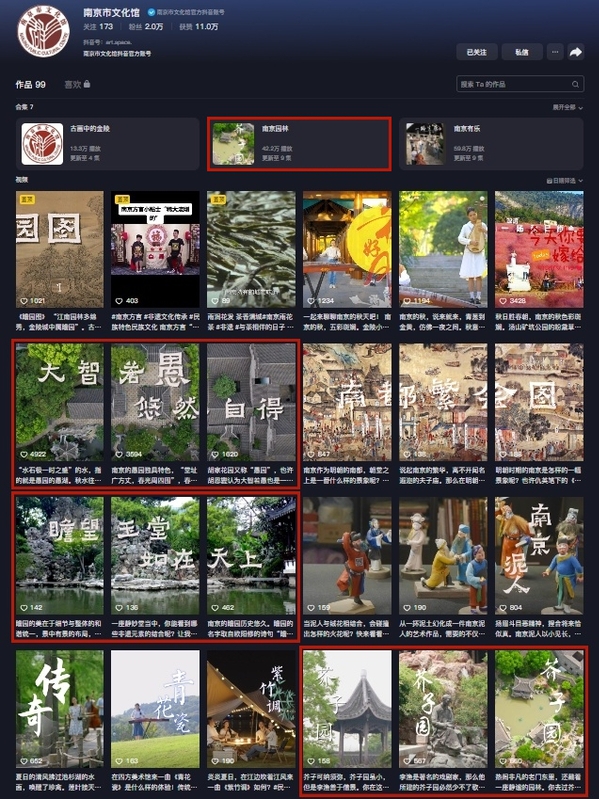 杨院长带领观众走近南京金陵芥子园、金陵瞻园和金陵愚园,一同感受江南园林的无穷韵味,内容丰富,内涵深厚。《南京园林》系列短视频是南京市文化馆抖音平台今年推出的新栏目,作为南京市文化馆大力开发的数字文化产品之一,旨在让广大群众随时随地接受艺术的熏陶。