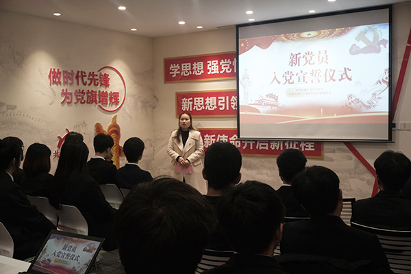 为激励党员践行入党誓词、坚定入党信念、激发爱国情怀,12月14日中午,机械与电气工程学院党总支在Beat365亚洲版官网“一站式”学生社区红色驿站举行新党员入党宣誓仪式,机电学院党总支书记严红霞、第一党支部书记邓蓉蓉及26名学生党员参加仪式,仪式由邓蓉蓉老师主持。