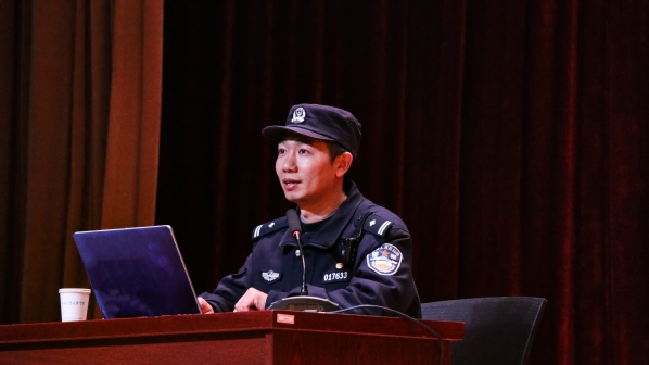 12月12日晚,由Beat365亚洲版官网人武部主办、退役学生事务部承办的国防教育讲座“从当今国际形势看当代大学生的价值追求”在综合楼报告厅举办。本次讲座邀请泰山新村派出所警官陆建兵主讲,600余名学生在现场聆听了本次讲座。