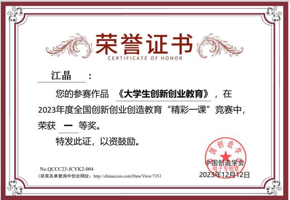 据悉,由中国创造学会主办的全国创新创业创造教育“精彩一课”于2022年9月30日被列入2023年全国普通高校教师教学竞赛清单,并作为教学竞赛维度纳入2023版全国普通高校教师教学发展指数。大赛的主旨是为了落实《国务院办公厅关于深化高等学校创新创业教育改革的实施意见》精神,进一步响应“大众创业、万众创新”的时代要求,深刻领会习近平总书记关于“创新创业创造”重要论述的时代内涵,进一步激发教师们的创造潜能和创业意识,加强创新创业课程建设,挖掘和推广企业创新与管理的典型案例及先进经验,促进优质教育资源共建共享。