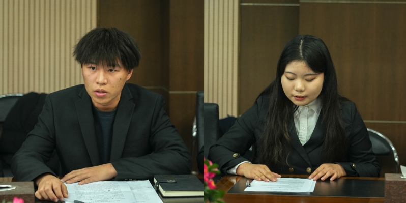 学生会主席团成员蒋春焱、社团管理部负责人周瑞琪汇报工作