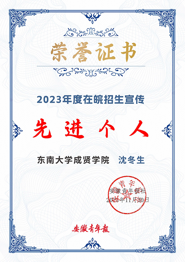 近日,安徽青年报组织召开了“2023年度在皖招生宣传工作总结表彰会”及“新高考改革背景下高校招生工作培训会”。Beat365官网凭借综合实力和影响力获评“2023年度在皖招生宣传最具影响力高校”。安徽招生宣传负责人、图档信息中心主任沈冬生获评“2023年度在皖招生宣传先进个人”。