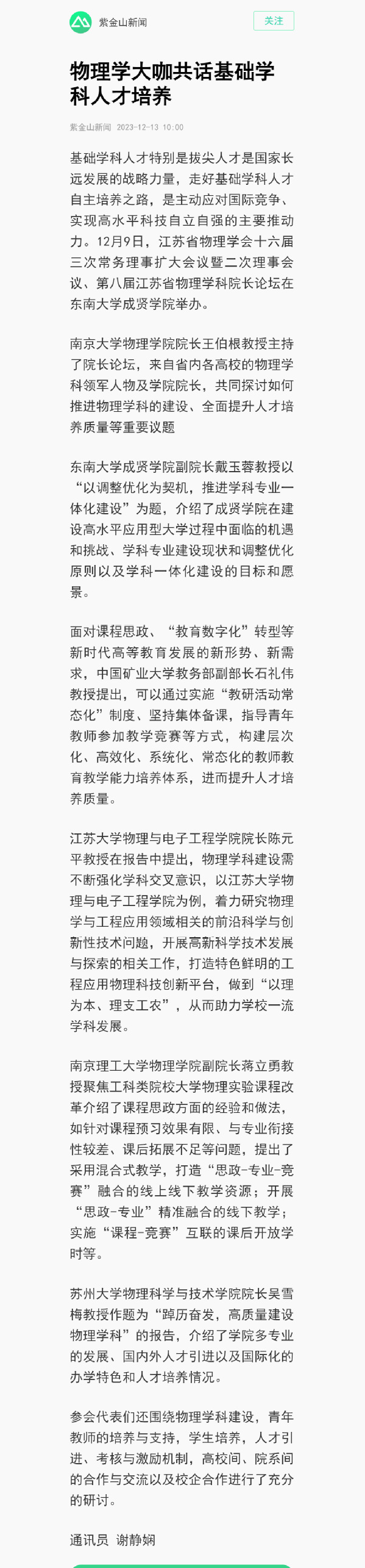 【南京日报】物理学大咖共话基础学科人才培养