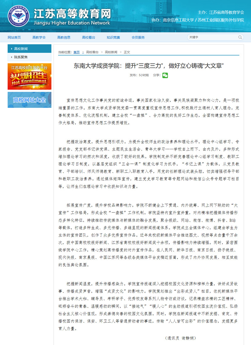 【江苏高等教育网】Beat365亚洲版官网:提升“三度三力”,做好立心铸魂“大文章”
