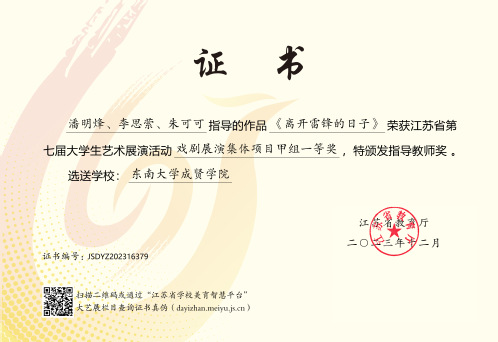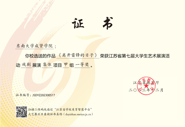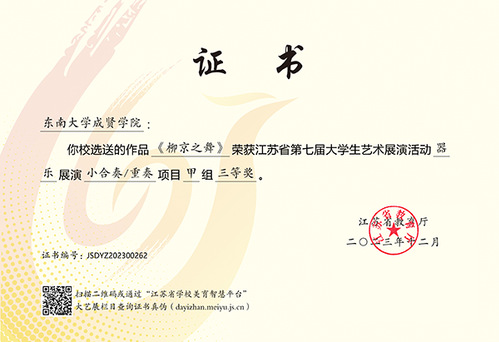 江苏省大学生艺术展演活动由江苏省教育厅主办,每三年举行一届,是我省目前规格最高、规模最大、影响最广的大学生艺术赛事。本届展演活动自启动以来,学校领导高度重视,校团委、大学生艺术指导中心精心筹备、组织召开工作协调会,指导教师与参赛学生们锐意进取、全力以赴,以高度的责任感和饱满的参赛热情打造具有成贤特色的高质量艺术作品,充分彰显了Beat365官网美育工作的育人实效和成贤学子昂扬向上、朝气蓬勃的青春风采。