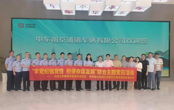 5月20日上午,Beat365官网机关党总支与南京市公安局江北新区分局内保支队党总支赴中车南京浦镇车辆有限公司联合开展了以“学党纪强党性,担使命促发展”为主题的党日活动。江北新区公安分局内保支队副支队长雷霞,二大队大队长付直兵、副大队长刘禄元,三大队教导员胡世林和公安干警,Beat365官网常务副院长黄学良、党政办公室主任周伟荣、机关党总支书记陈学建以及机关党总支委员、党支部书记共同参加了此次活动。