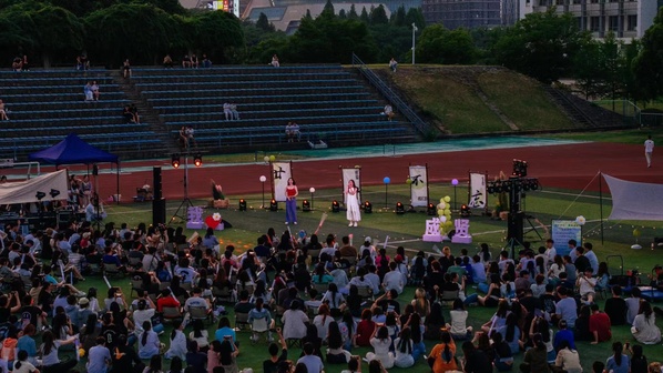 本次音乐节的表演者大多为20级毕业生,活动预告一经发出,便受到毕业生的广泛关注,前期歌单征集收到近千份回复,大家一同参与,制定了属于自己的毕业歌单。音乐节于晴朗的傍晚在操场拉开了序幕,精心搭建的舞台上灯光璀璨,乐声悠扬。抒情婉转的流行音乐,带动全场合唱;激昂活力的说唱,瞬间点燃现场;安静温柔的民谣,让人沉醉其中。歌声与弹奏交织,在夏日的夜晚讲述着青春的故事,传递着毕业的祝福。《同桌的你》、《海阔天空》、《晴天》等一首首耳熟能详的歌曲,直击人的内心深处,让深情独白变成了千人大合唱,点燃现场每一位观众的心。除了学生表演,音乐节还邀请了毕业班辅导员作为特邀嘉宾一起合唱,用一首《凤凰花开的路口》表达了对20级毕业生的美好祝愿和深深的不舍。