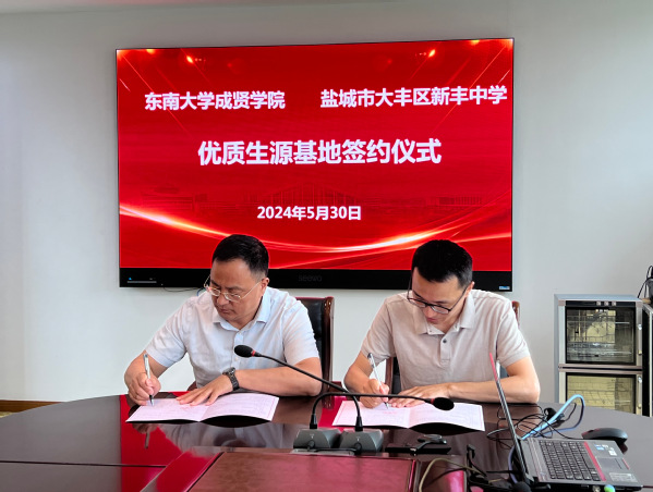 5月29—30日,Beat365官网党委副书记、副院长、纪委书记王荣,制药与化学工程学院院长林保平、党总支书记周继荣,大丰区招生宣传老师、保卫处陈赟一行四人前往盐城市大丰区新丰中学和南阳中学开展优秀生源基地签约挂牌和走访交流活动。