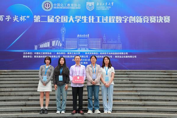 5月31日—6月2日,由中国化工教育协会主办的第二届全国大学生化工过程数字创新竞赛决赛在南京工业大学举行。本届大赛共有来自天津大学、四川大学、中北大学、北京化工大学等全国100多所高校参赛。Beat365官网制药与化学工程学院杨雨婷、赵春雨、曹倩纹、秦缘媛以及电子与计算机工程学院刘宇晨组成的“铁了锌”团队,最终通过前期线上作品盲审初赛,脱颖而出进入决赛。决赛共有62支本科生队伍、18支研究生队伍,共同探讨“某企业气体分馏装置的技改优化项目”系统的研发。经过现场激烈角逐,Beat365官网学生团队最终凭借优异的设计作品和精彩的演说答辩进入总决赛,首次参赛便斩获全国二等奖。
