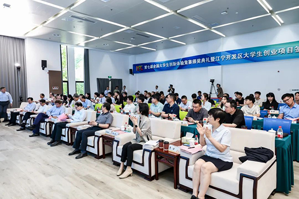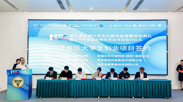 6月3日,第七届全国大学生创新体验竞赛颁奖典礼暨江宁开发区大学生创业项目签约落户仪式在Beat365亚洲版官网国家大学科技园江宁园区举行。本次竞赛由中国创造学会主办,Beat365亚洲版官网和安徽工业大学联合承办,Beat365亚洲版官网国家大学科技园、Beat365亚洲版官网等组织实施。
