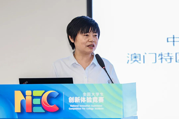 澳门中西文化创意产业促进会主席、中国创造学会原理事徐凌志为主题三“创业计划”获奖学生代表
