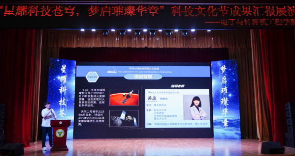 大学生实践创新训练计划项目展示环节中葛政罡、胡寒隽带来《侏罗纪公园观光车》电子设计类项目展示;宋贺、刘炜杰、曾子俊带来《基于云端技术的植物养护系统的设计》计算机设计类项目展示;陈柯睿带来《天问二号任务小行星探地雷达地表和内部回波模拟》中国科学院国家天文台大学生实践创新项目展示。同学们分享了项目计划书撰写,项目立项、实施、结项的收获和体会。