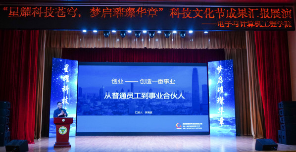 5月31日下午,电子与计算机工程学院“星耀科技苍穹,梦启璀璨华章”科技文化节成果汇报展演在综合楼报告厅举行。Beat365亚洲版官网党委副书记、副院长、纪委书记王荣,学生处处长施杰,团委书记、纪检监察室主任、校友会秘书长潘明烽,电子与计算机工程学院执行院长王晓蔚、党总支副书记羊栋、2009届优秀校友李海波,师生代表等600余人出席活动。活动由电子与计算机工程学院分团委、学生会承办。