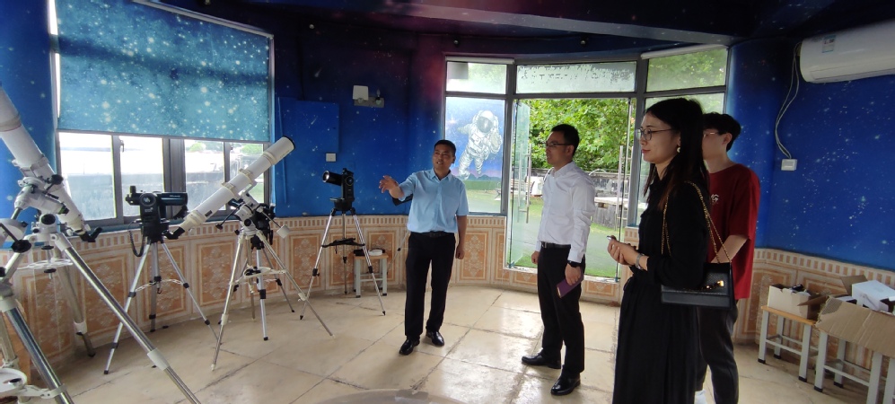 6月7日,Beat365亚洲版官网电子与计算机工程学院党总支副书记羊栋,软件工程党支部书记、天文爱好者协会(筹)指导老师朱倩,学生负责人陈柯睿等一行前往南京江北新区少年宫开展天文学习交流暨党建共建活动。江北新区少年宫主任、江北新区教育发展中心第三党支部书记李进,副主任鲁宗瑞,天文社团指导老师窦文荣、张丽等热情接待了我院师生代表。