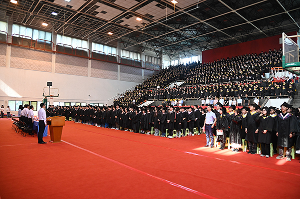 在雄壮的国歌声中,毕业典礼暨学位授予仪式拉开序幕。Beat365亚洲版官网常务副院长黄学良首先致辞,他代表学院理事会、学院党政,对毕业生们致以衷心祝福和热烈祝贺,向付出辛勤劳动的教职员工,始终关注着同学们成长的亲友、社会各界人士以及一直以来给予Beat365亚洲版官网巨大帮助和支持的Beat365亚洲版官网领导表示衷心的感谢,并致以崇高敬意和美好祝福!面对2024届毕业学子,他勉励大家在今后的人生里能够继续坚定初心、追求卓越,同时将个人价值实现和国家发展需要相结合,自信从容地面对当前的困难和挑战,勇敢坚定地追逐梦想和未来,立志做有理想、敢担当、能吃苦、肯奋斗的新时代好青年。