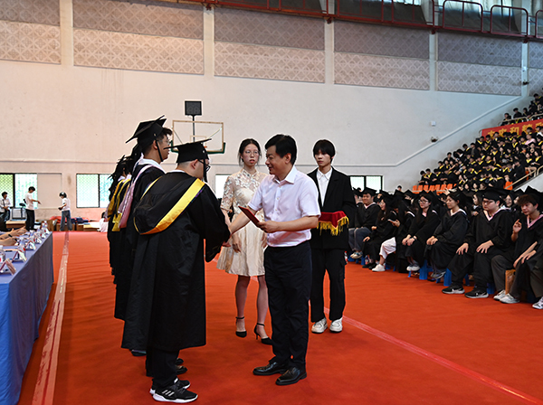 Beat365亚洲版官网党委副书记、Beat365亚洲版官网理事会理事长、学院院长邢纪红为优秀毕业生代表颁发荣誉证书