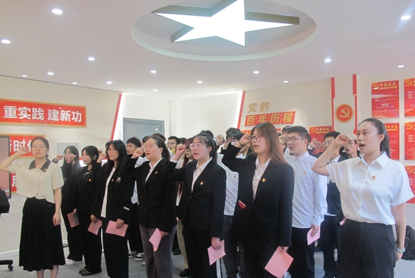 为激励党员践行入党誓词、坚定入党信念、激发爱国情怀,6月15日中午,机械与电气工程学院党总支在“一站式”学生社区红色驿站举行新党员入党宣誓仪式学院党总支书记严红霞党支部书记黄霞老党员代表江磊、汪卉、司博文29名学生党员参加仪式由党总支宣传委员马逸凡主持。