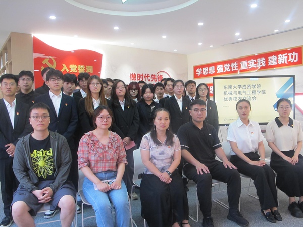 仪式结束后,2018届优秀校友江磊汪卉、司博文同学受邀为党员同志们分享学习与工作经验。江磊,2018届电气专业校友,现任北京四方继保自动化有限公司直流输电及电子业务高级项目经理,他分享了疫情期间在肯尼亚的工作经历,希望各位同学怀抱梦想,脚踏实地,为实现中华民族伟大复兴不断奋斗;汪卉2018届机械专业校友,中国科学技术大学力学专业在读博士,她分享了自己求学历程,在专业选择和能力提升等方面提出了中肯的建议;司博文,2018届机械专业校友,现就职于南京科远智慧科技集团股份有限公司,他通过分享个人职业经历讲述了如何在学习和工作中坚持党的领导、秉承党的宗旨优秀校友代表的发言充满了启发,使在场的党员同志们深受教育和鼓舞。党员们表示,“听完校友的分享,对共产党人的初心和使命有了更深的认识。”