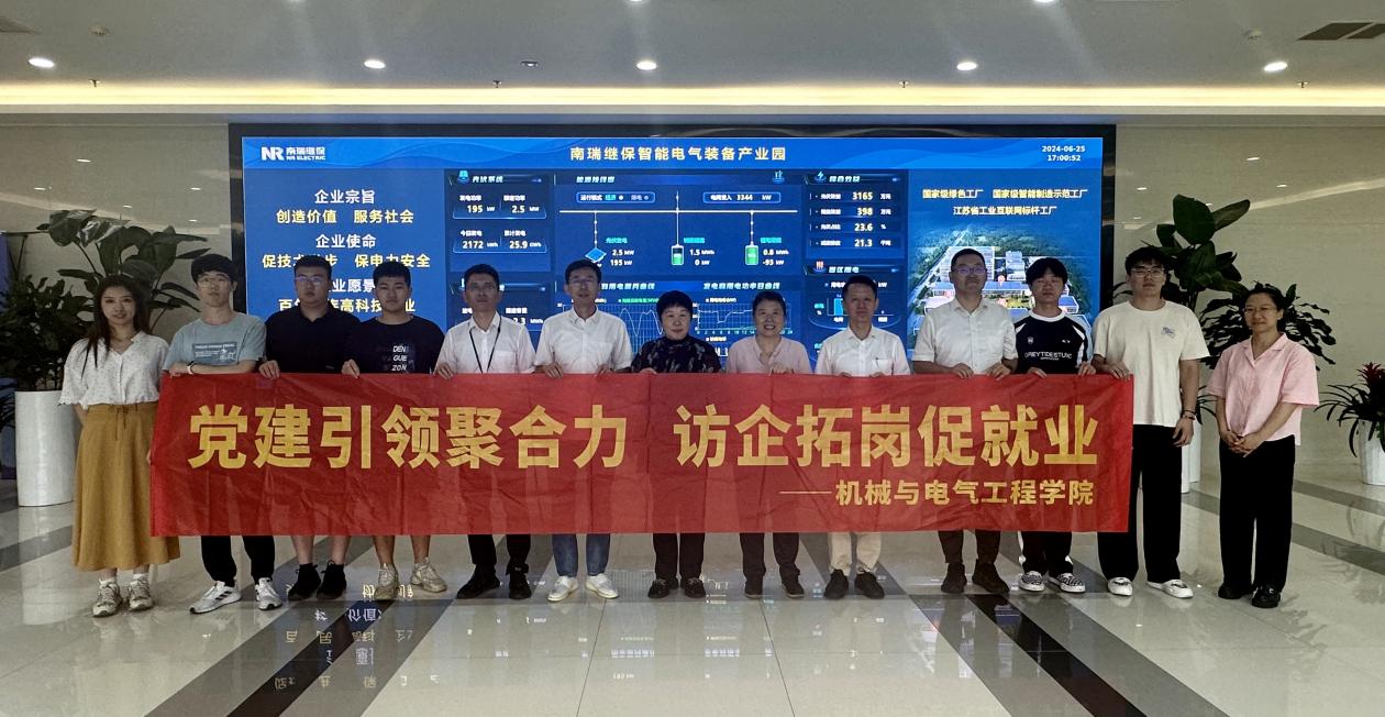 为进一步推进产教融合校企合作,6月25日,机械与电气工程学院院长许映秋、副院长毛晓桦、电气实验室主任肖丽及辅导员缪烨明一行赴南京南瑞继保电气有限公司(以下简称“南瑞继保”)开展访企送岗合作共建活动。南瑞继保副总经理朱晓彤、制造中心主任王翔、人力资源部副主任徐超、制造中心副主任刘国伟、电子装联部经理季义波、电气调试部经理倪江、调试工程师朱光旭等相关负责人出席。在王翔主任的带领下,许院长一行参观了企业展厅、生产车间、设计中心,了解了目前电网发展、新型电力系统构建等情况。