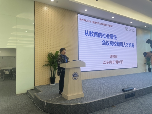 研讨会上,许映秋院长做了《从教育的社会属性刍议高校新质人才的培养》的主题发言,分别从教育的社会属性、教育的历史性,高校如何培育新质人才,当前新质人才培养面临的挑战与机遇,以及新质人才培养模式创新等方面做了详细的报告。