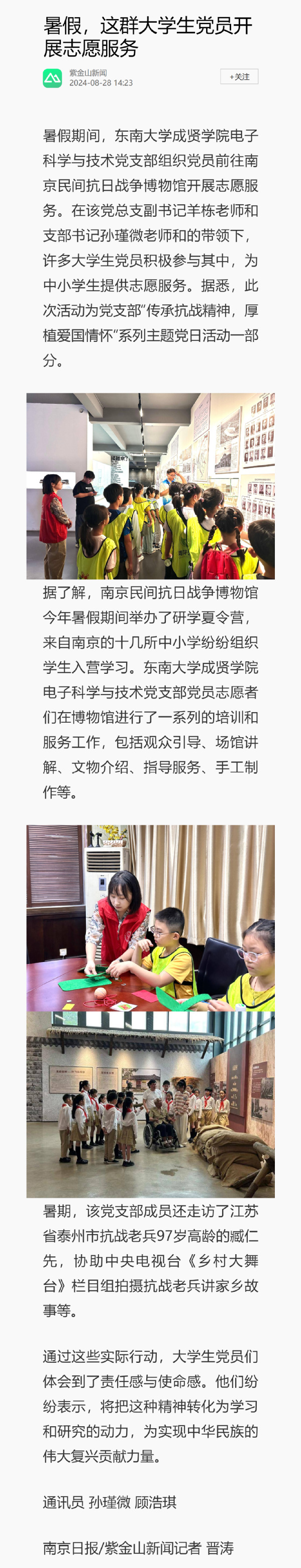 【南京日报】暑假,这群大学生党员开展志愿服务
