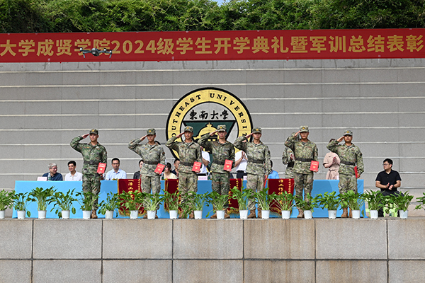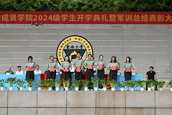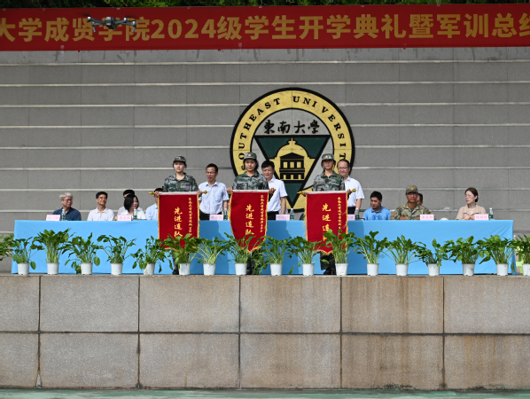 Beat365亚洲版官网党委书记张志胜教授宣读2024级学生军训团嘉奖令和获得2023-2024学年江苏省表彰的三好学生、优秀学生干部和先进班集体的喜报。与会领导为军训获奖集体和个人颁奖。Beat365亚洲版官网党委副书记,Beat365亚洲版官网理事会理事长、Beat365亚洲版官网院长邢纪红教授为获得2023-2024学年江苏省表彰的三好学生、优秀学生干部及先进班集体的学生代表颁奖。