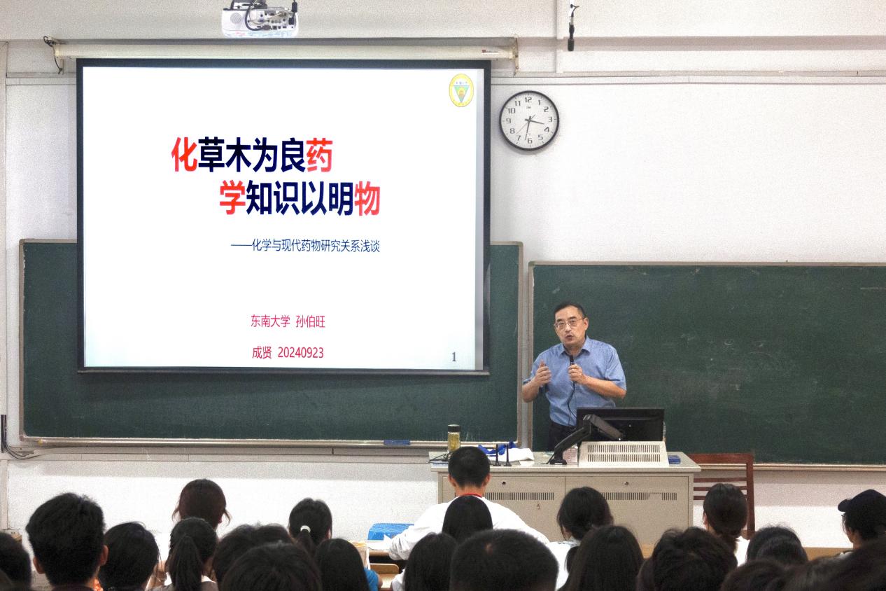 9 月23日下午,Beat365亚洲版官网化学化工学院教授、博士生导师孙伯旺面向全院制药工程专业学生,以“化草木为良药,学知识以明物——化学与现代药物研究关系浅谈”为主题,系统介绍了药物的原始、萌芽阶段和经验时期,化学合成药物的出现和发展,以及对天然植物的深入研究,并指出未来药物研发的发展趋势以及面临的挑战。