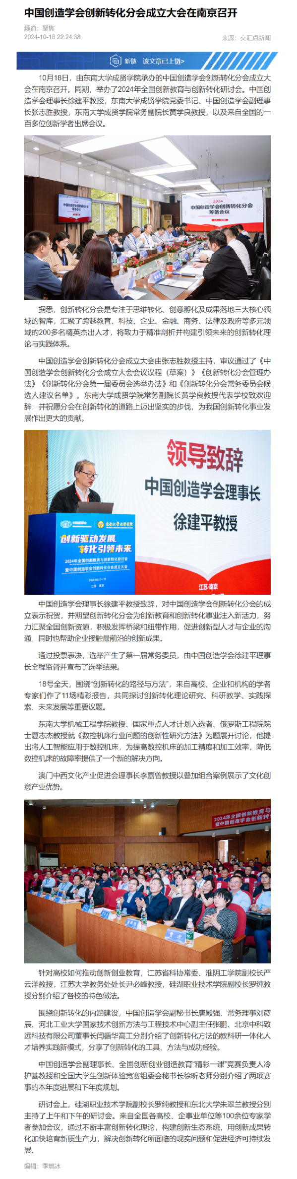 【交汇点】中国创造学会创新转化分会成立大会在南京召开