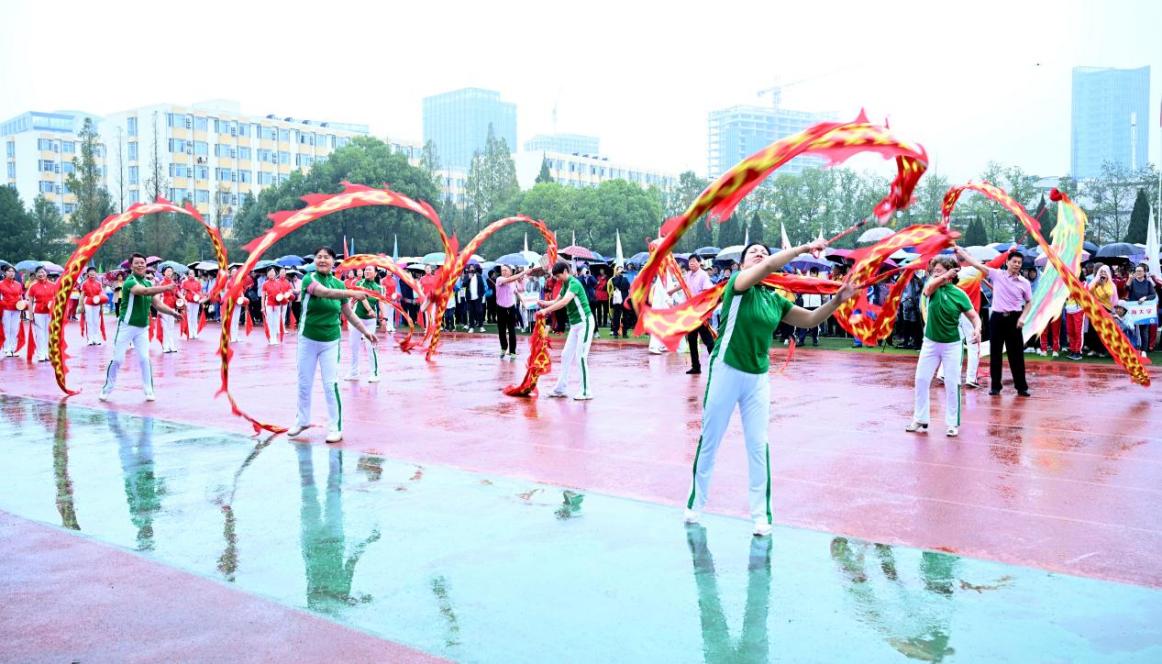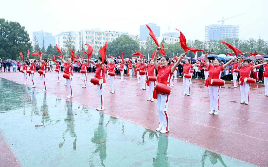 开幕式上Beat365亚洲版官网离退休老同志们带来腰鼓表演“龙飞凤舞”