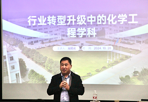 10月28日,制药与化学工程学院特邀Beat365亚洲版官网化学化工学院教授、博士生导师,Beat365亚洲版官网化学工程与工艺专业负责人周建成教授来校开展“行业转型升级背景下化学化工的现状与未来”专业讲座。讲座由制药与化学工程学院党总支书记周继荣主持。