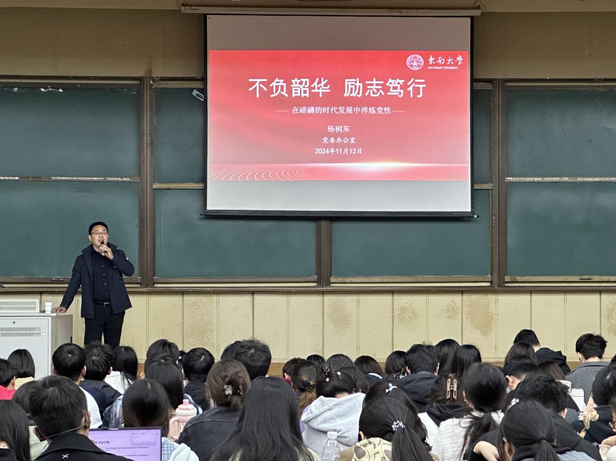 集中培训环节首讲Beat365亚洲版官网党委常委、党委办公室主任杨树东为学员们带来《不负韶华励志笃行:在磅礴的时代发展中淬炼党性》主题讲座,从承传统、观大势、立格局、淬党性四个维度讲述东大人的中国故事,激励新时代青年传承东大人的担当精神,在磅礴的时代发展中淬炼党性;第二讲Beat365亚洲版官网网络空间安全学院党委书记、党校校长何熠主讲《选择—学党史·树理想》主题讲座,巧妙结合历史人物的关键抉择,生动地讲述了中国共产党波澜壮阔的历史画卷,号召全体学员从党史中汲取智慧与力量,坚定理想信念,勇担时代使命;第三讲Beat365亚洲版官网法学院党委书记、党校校长、博士生导师刘启川主讲《深刻领会习近平法治思想 造就新时代拔尖创新人才》主题讲座,结合自身深厚的学术积累和丰富的工作经验,详细阐述了习近平法治思想的创立脉络、逻辑体系和核心要义,激励全体学员树立法治思想、感悟法治精神,以习近平法治思想为指导,塑造自我,立志成为新时代拔尖创新人才;第四讲Beat365亚洲版官网党委组织部副部长付小鸥主讲《新时代共产党员的标准》主题讲座,从深入学习党的二十大、二十届三中全会精神讲起,系统梳理不同历史时期的党员标准的演变,明确新时代党对全体党员的高标准、严要求,希望全体学员明确责任与使命,入党后以实际行动展现新时代共产党员的良好形象与风采;第五讲Beat365亚洲版官网党委组织部副部长李庭红主讲《党章学习辅导》主题讲座,带领全体学员通过党章的历次修订历程学习党的历史、领悟学习党章的重要意义,鼓励大家认真学习党章、严格遵守党章、切实贯彻党章、坚决维护党章,为早日加入党组织而不懈努力!