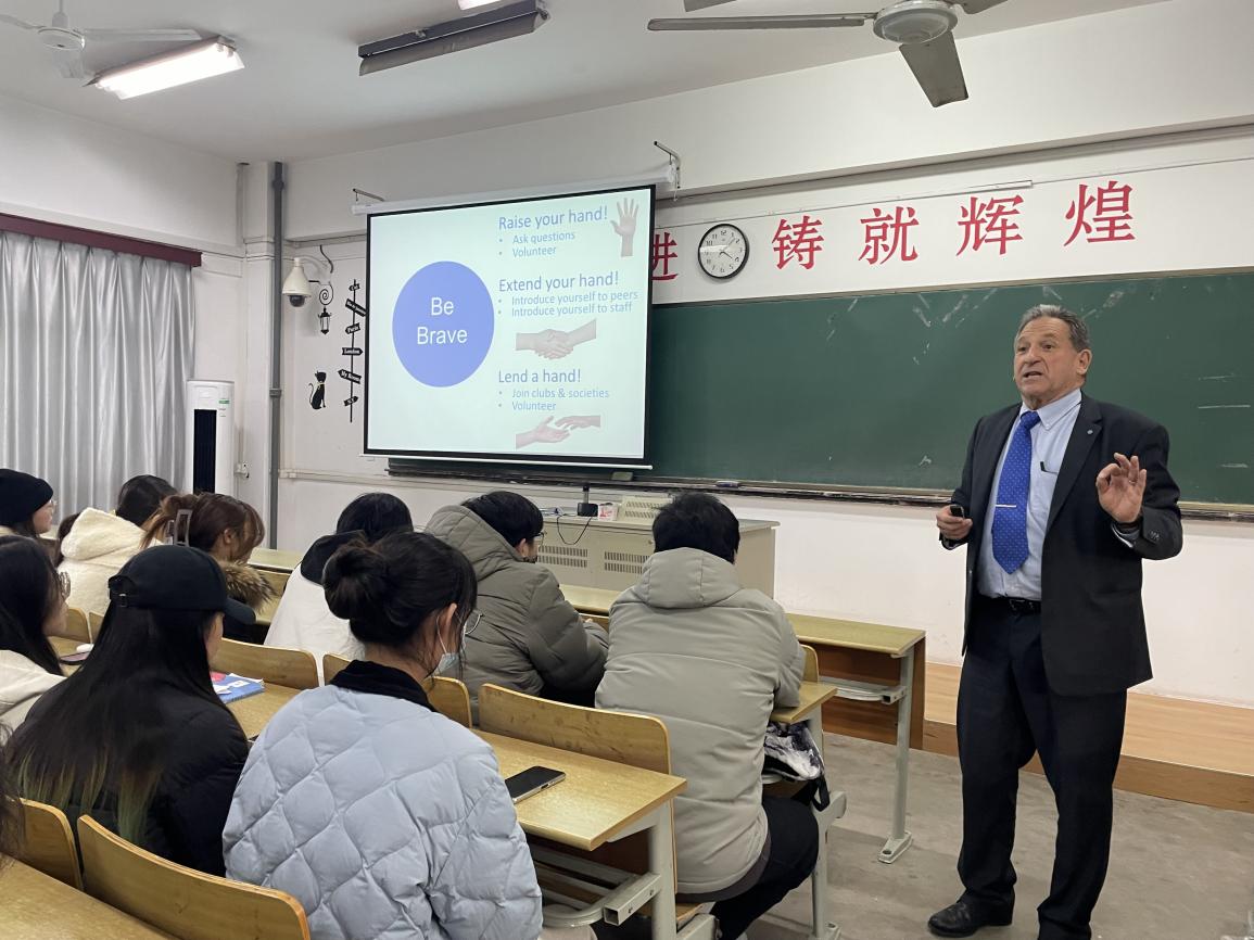 随后,面向学生开展了宣讲会。Jeffery院长以为什么要学习商科专业为切入点,介绍了梅西大学商学院会计学、市场营销等专业的课程,并辅以可持续发展的学科贡献,向同学们深入浅出地展示了梅西大学独特的商学教育体系。他强调梅西大学重视学生的合作、交流、批评和创造能力的全面培养,鼓励学生要敢于表达、注重合作交流的锻炼等,同时,Jeffery院长还就新西兰的地貌风情展开与同学们的讨论与互动,在风趣对话中加深了同学们对新西兰的认识和了解。同学们通过与Jeffery院长面对面的交流互动,对梅西大学的教育有了直观的认识,对于未来的学习和职业规划也有了更加清晰的认识。