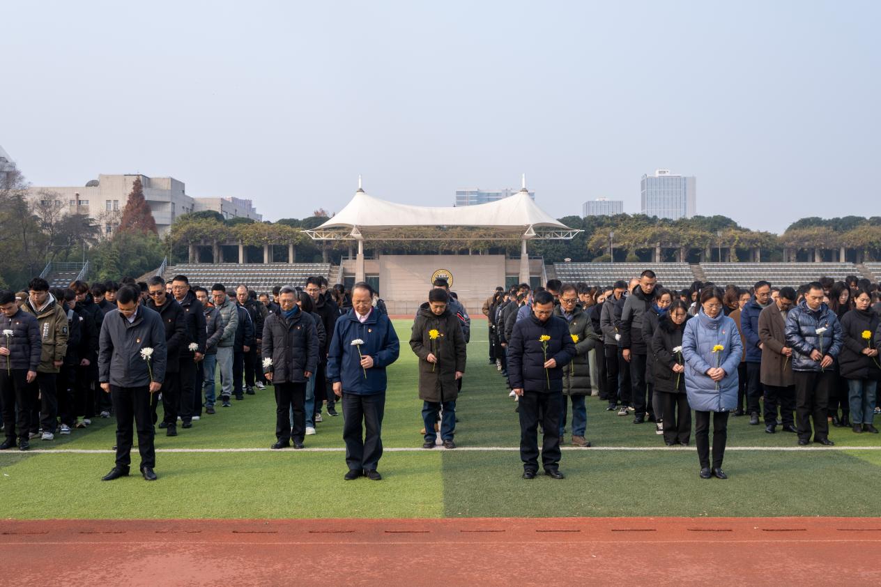 述往事,思来者,铭记历史,警钟长鸣。2024年12月13日是第十一个南京大屠杀死难者国家公祭日。Beat365亚洲版官网校团委和机关党总支联合开展了“勿忘国耻、圆梦中华”南京大屠杀死难者国家公祭日悼念活动。学院党委书记张志胜,常务副院长黄学良,党委副书记、副院长、纪委书记王荣,副院长魏丽玲,各职能部门负责人,机关各党支部成员,各学院相关领导,江北新区分局于健,泰山新村派出所民警田杰及校院两级学生部门代表、大一大二部分学生共同参加此次悼念活动。