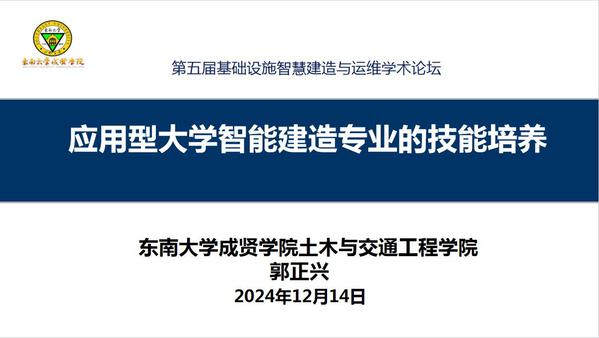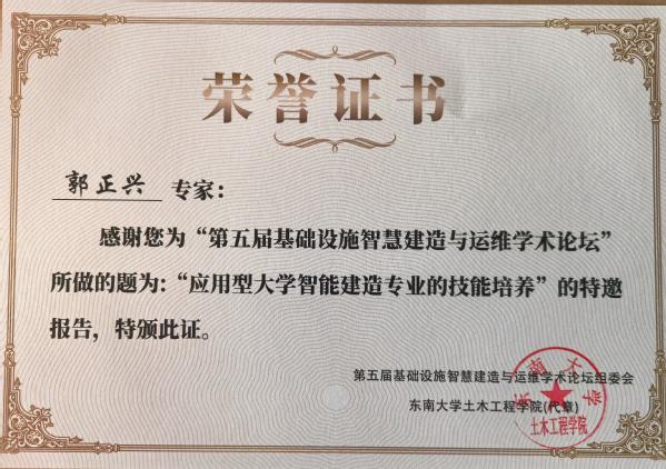 本次论坛依托大数据、云计算、区块链和人工智能等新兴技术的使用和发展,聚焦加快5G网络、人工智能、大数据中心等新型基础设施建设进度,围绕进一步统筹好新型和传统基础设施的协同融合发展,构建现代化基础设施体系,重大基础设施智慧建造与运维最新研究进展等议题展开交流研论,共同探讨我国在相关领域的卡脖子问题及其解决思路。论坛上,郭正兴院长结合“智能建造本—研—职多层次融合人才培养”议题,作了题为《应用型大学智能建造专业的技能培养》专题报告。郭院长围绕建筑工业化、数字化、绿色化融合发展,应用型大学智能建造专业的知识结构和技能结构分析,Beat365亚洲版官网智能建造专业模块化实操技能构建与实施,智能建造综合实训课程体系建设等内容,详细报告了Beat365官网智能建造专业在专业、课程建设方面所做的尝试与探索,为国内同类高校构建创新人才培养模式,培养具有实操技能的高水平应用型本科人才提供实践经验。
