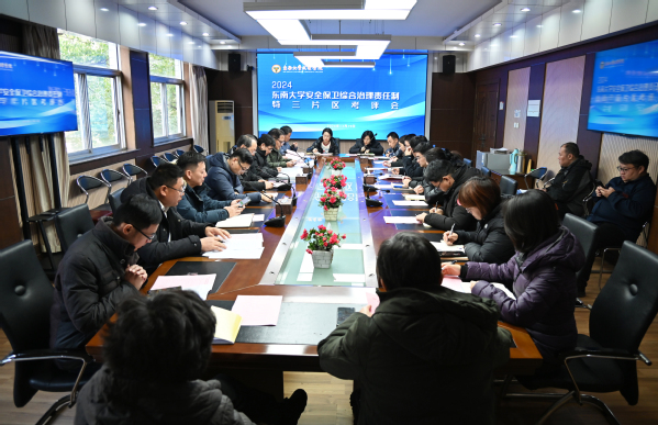 12月19日,2024年度Beat365亚洲版官网安全保卫综合治理责任制特三片区考评会在我院召开。今年,根据Beat365亚洲版官网统一安排,Beat365亚洲版官网江北校区管委会、生命科学与技术学院和Beat365亚洲版官网组成特三片区。片区负责人、Beat365亚洲版官网党委书记张志胜,江北校区管委会办公室主任许峰,生命科学与技术学院行政秘书吴志龙,Beat365亚洲版官网机关部门负责人及二级学院(部)党总支负责人参加会议,会议由Beat365亚洲版官网党委副书记、副院长、纪委书记王荣主持。