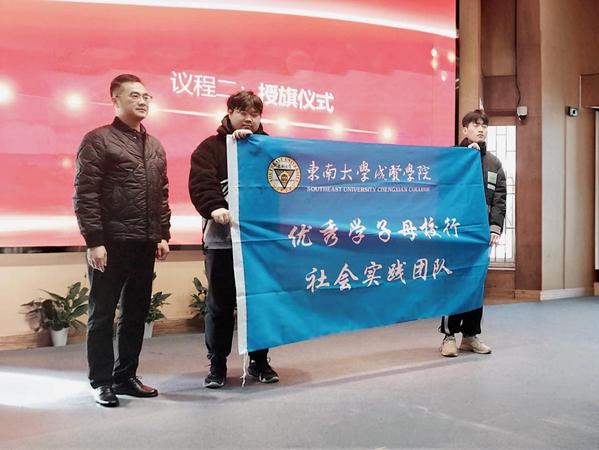 会上,苏力副处长向第七届“优秀学子母校行”活动团队授旗。