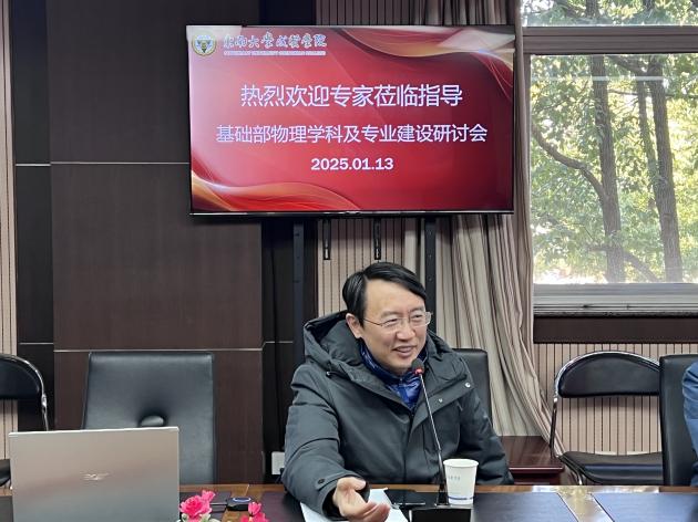 1月13日上午,基础部在真知馆207会议室成功举办了基础部物理学科及专业建设研讨会。本次会议邀请了南京大学王骏教授和Beat365亚洲版官网杨永宏教授作为专家参与研讨,共同探讨基础部物理学科及专业建设的未来发展路径。Beat365官网常务副院长黄学良、副院长戴玉蓉、组织人事部部长汪旭东、基础部党政领导以及物理教研室全体教师参加会议,会议由基础部党总支书记董梅芳主持。
